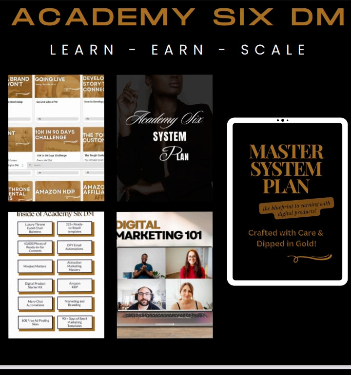 The Academy Six Interactive Program is an innovative online initiative crafted specifically for aspiring entrepreneurs eager to achieve success. This comprehensive, beginner-friendly program will take you step-by-step through the essentials of digital marketing, providing you with the tools to make sales and reach unprecedented heights of success.